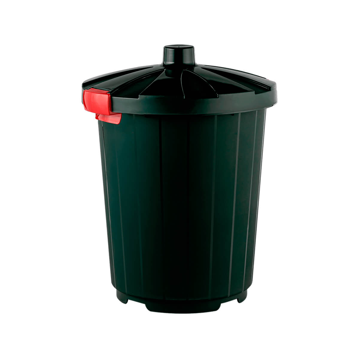 Надежная крышка с защелками обеспечивает фиксацию содержимого и защиту от воздействия животных и насекомых. Темно-зеленый цвет добавляет акцент свежести и стиля в окружающую среду. Ребристая внешняя поверхность облегчает перемещение, а гладкие внутренние стенки упрощают процесс очистки и дезинфекции.